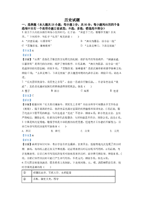 精品解析:2022年6月浙江高考历史高考真题(解析版).docx