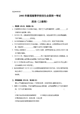 2003年上海市高中毕业统一学业考试政治试卷(原卷版).doc