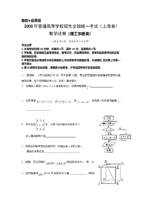 2009年上海高考数学真题(理科)试卷(word解析版).doc