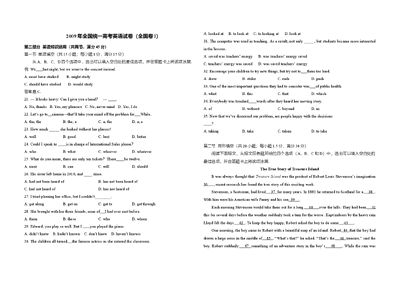 2009年高考英语试卷(全国卷Ⅰ)(原卷版).doc