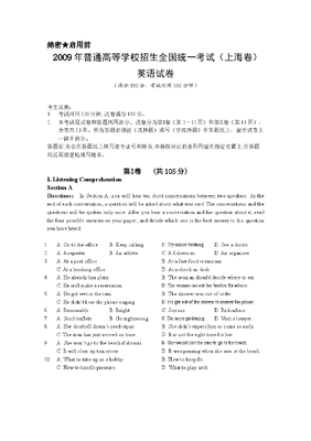 2009年上海高考英语真题试卷(word解析版,含听力原文).doc