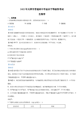 精品解析:2022年新教材天津生物高考试题(解析版).docx