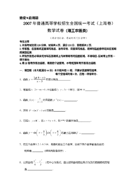 2007年上海高考数学真题(理科)试卷(word解析版).doc