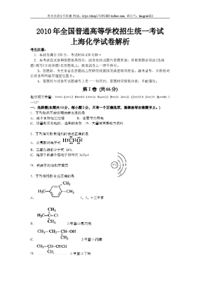 2010年上海市高中毕业统一学业考试化学试卷(原卷版).doc