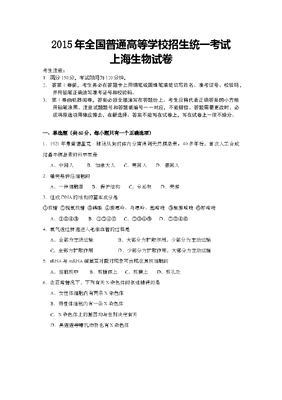 2005年上海市高中毕业统一学业考试生物试卷(原卷版).doc