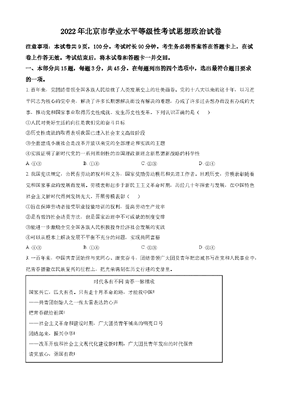 精品解析:2022年新高考北京政治高考真题(原卷版).docx