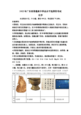 精品解析:2022年广东省普通高中学业水平选择性考试化学试题(解析版).docx