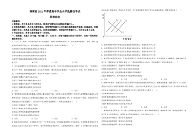 2021年湖南省普通高中学业水平选择性考试政治试题(原卷版).doc