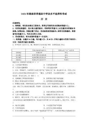 2021年高考真题—— 历史(湖南卷) (原卷版).doc