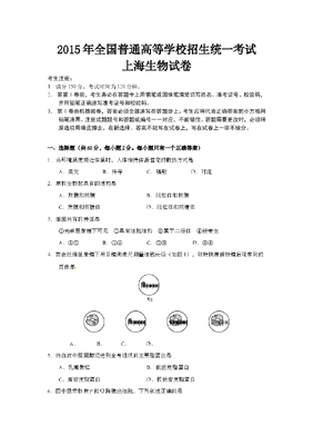 2015年上海市高中毕业统一学业考试生物试卷(word解析版).doc