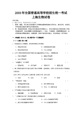 2003年上海市高中毕业统一学业考试生物试卷(答案版).doc