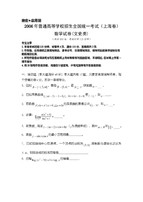 2006年上海高考数学真题(文科)试卷(word解析版).doc