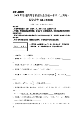 2008年上海高考数学真题(理科)试卷(word解析版).doc