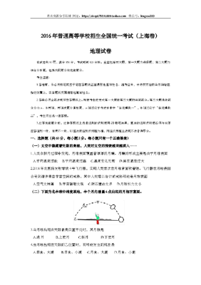 2016年上海市高中毕业统一学业考试地理试卷 (原卷版).doc