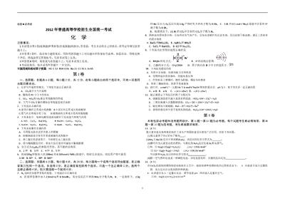 2012年上海市高中毕业统一学业考试化学试卷(word解析版).doc