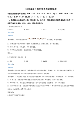 精品解析:2022 年1月浙江省普通高校招生选考科目考试化学试题(解析版).docx