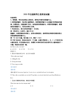 2021年高考英语试卷(全国乙卷)(含解析版).docx