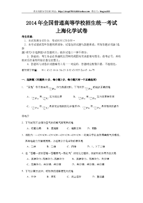 2014年上海市高中毕业统一学业考试化学试卷(原卷版).doc