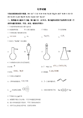 精品解析:2022年6月浙江省普通高校招生选考化学试题(原卷版).docx