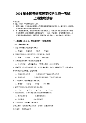 2004年上海市高中毕业统一学业考试生物试卷(原卷版).doc