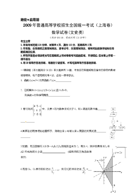2009年上海高考数学真题(文科)试卷(word解析版).doc