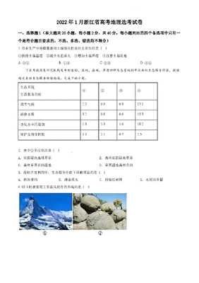 精品解析:浙江省2022年1月普通高中学业水平选择性考试地理试题(原卷版).docx