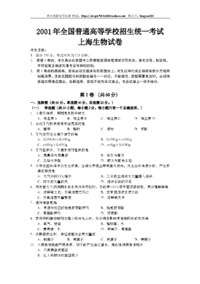 2001年上海市高中毕业统一学业考试生物试卷(答案版).doc