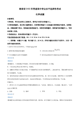 精品解析:2022年海南省高考真题化学试题(解析版).docx
