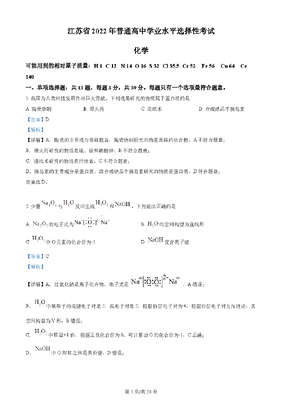 精品解析:2022年江苏省高考真题化学试题(解析版).docx