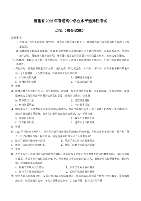2022年新高考福建历史高考真题文档版(部分试题)(答案).docx
