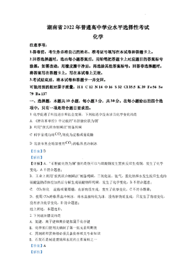 精品解析:2022年湖南省普通高中学业水平选择性考试化学试题(解析版).docx