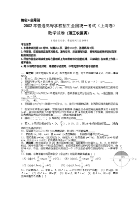 2002年上海高考数学真题(理科)试卷(word版).doc