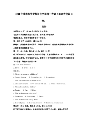 2021年普通高等学校招生全国统一考试(新高考全国II卷) 英语 解析版.doc