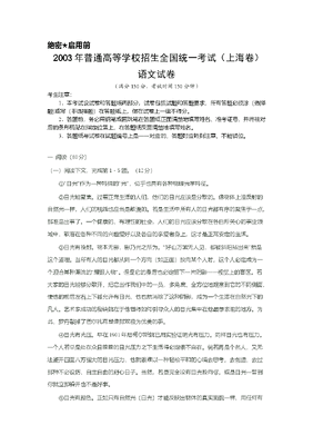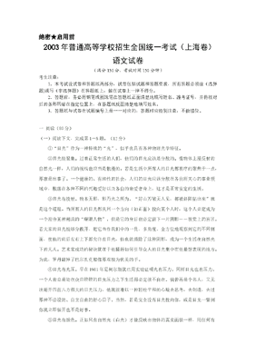 2003年上海高考语文真题试卷(答案版).doc