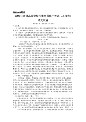 2000年上海高考语文真题试卷(答案版).doc