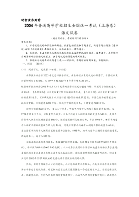 2004年上海高考语文真题试卷(答案版).doc