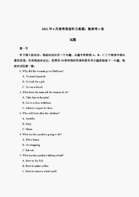 2021年6月高考英语听力真题:新高考1卷(试题).docx