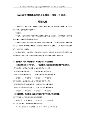 2009年上海市高中毕业统一学业考试地理试卷(答案版).doc