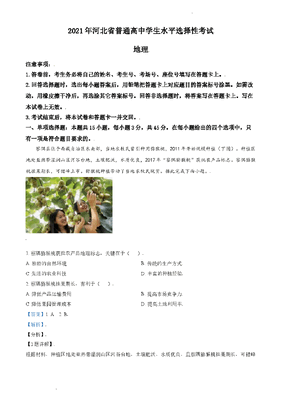 精品解析:2021年河北省高考地理试题(缺部分题)(解析版).doc