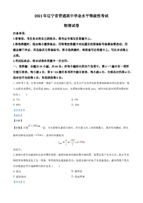 精品解析:2021年辽宁省普通高中学业水平选择性考试物理试题(辽宁卷)(解析版).docx