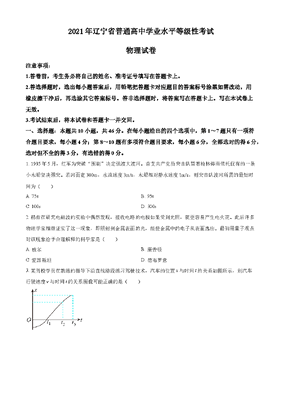 精品解析:2021年辽宁省普通高中学业水平选择性考试物理试题(辽宁卷)(原卷版).docx