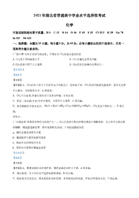 精品解析:2021年湖北省普通高中学业水平选择性考试化学试题(解析版).docx