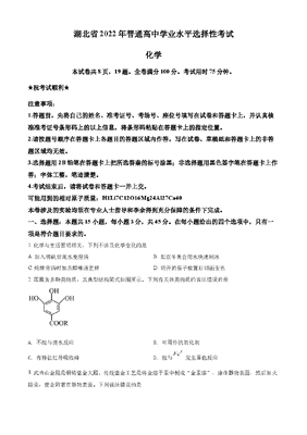 精品解析:2022年湖北省高考真题化学试题(原卷版).docx