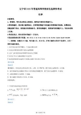 精品解析:2022年辽宁高考真题化学试题(解析版).docx