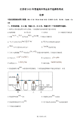 精品解析:2022年江苏省高考真题化学试题(原卷版).docx