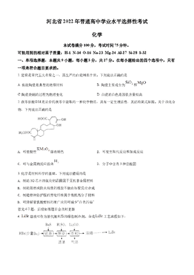 精品解析:2022年新高考河北省高考真题化学试题(部分试题)(原卷版).docx