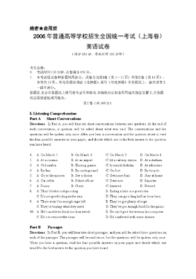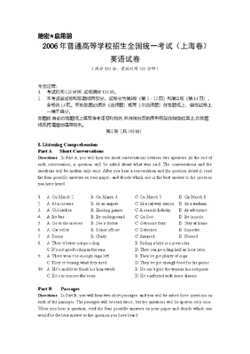 2006年上海高考英语真题试卷(答案版,含听力原文).doc
