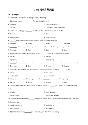 精品解析:2022年天津卷英语真题(原卷版).docx
