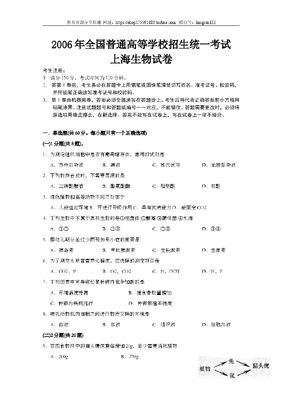 2006年上海市高中毕业统一学业考试生物试卷(答案版).doc