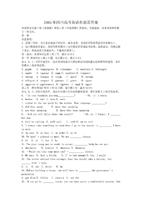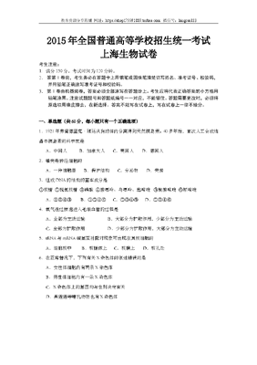 2005年上海市高中毕业统一学业考试生物试卷(答案版).doc